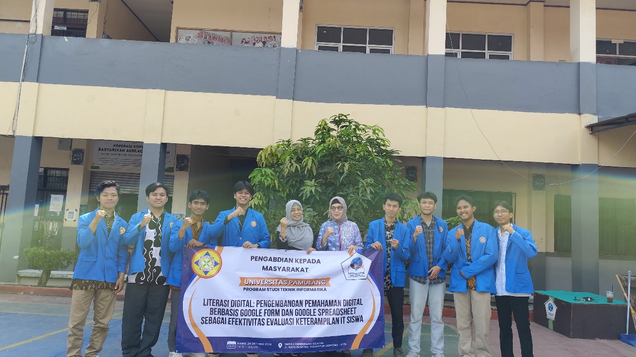 Mahasiswa Universitas Pamulang (UNPAM) sukses melaksanakan kegiatan Pengabdian Kepada Masyarakat (PKM) di SMK Negeri 3 Tangerang Selatan, Jl. Puri Serpong 1, Jl. Puspitek, Setu, Kec. Setu, Kota Tangerang Selatan, Kamis (24/10/2024) dengan tema “Literasi Digital: Pengambangan Dan Pemahaman Digital Berbasis Google Form Dan Google Spreadsheet Sebagai Efektivitas Evaluasi Keterampilan It Siswa”.