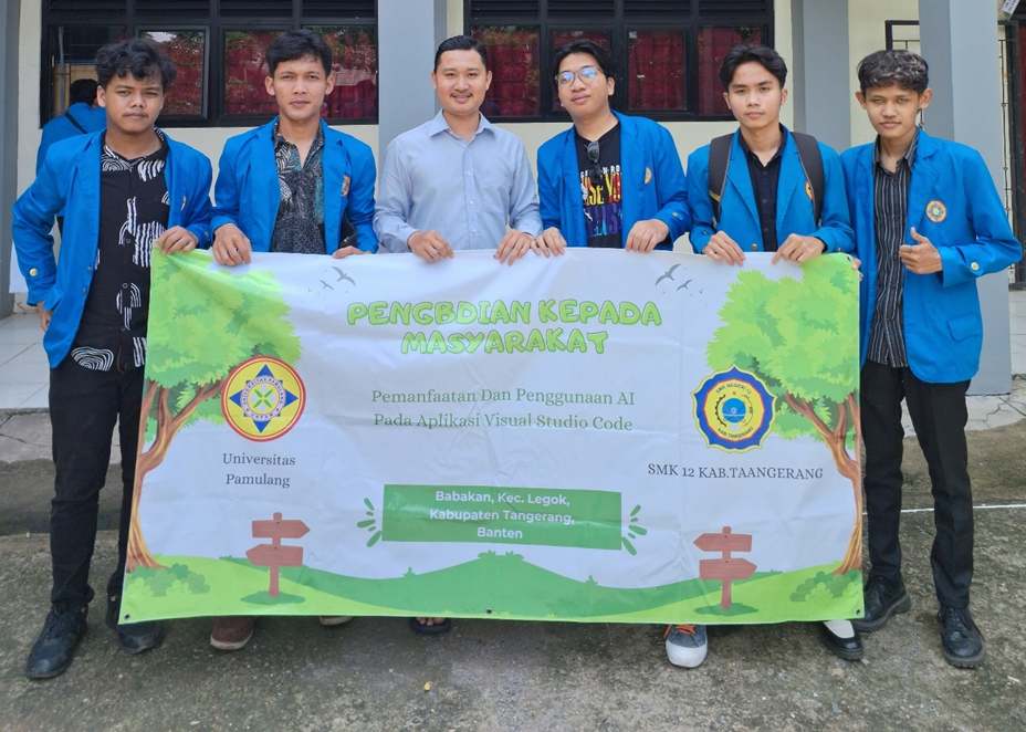 Tangerang – Lima mahasiswa Program Studi Sistem Informasi Fakultas Ilmu Komputer Universitas Pamulang berhasil menyelenggarakan kegiatan Pengabdian Kepada Masyarakat (PKM) bertema “Pemanfaatan dan Penggunaan Teknologi AI pada Visual Studio Code” di SMKN 12 Tangerang pada Rabu, 20 November 2024.