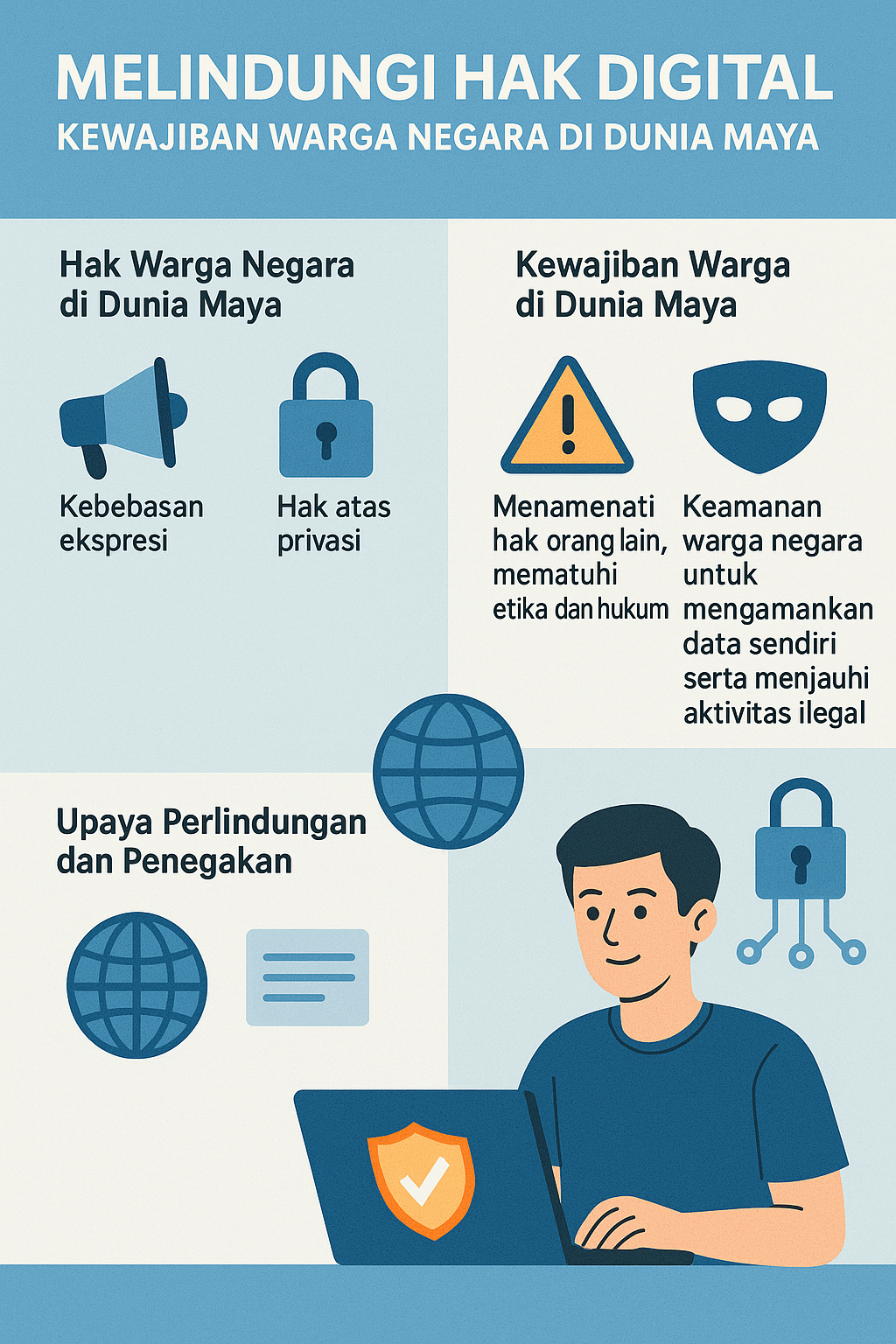 Di dunia maya, hak dan kewajiban warga negara tetap melekat dan harus dijaga keseimbangannya. Melindungi hak tanpa mengabaikan kewajiban akan menciptakan ekosistem digital yang sehat, aman, dan adil. Kolaborasi antara pemerintah, swasta, dan warga negara sangat diperlukan untuk memastikan dunia maya menjadi ruang yang memberdayakan semua orang.