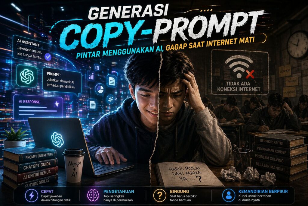 Fenomena “copy-prompt” muncul dari sini: pertanyaan disalin, dimasukkan ke AI, jawaban diambil, lalu selesai. Cepat dan efisien, tetapi sering kali hanya menghasilkan pemahaman yang dangkal.