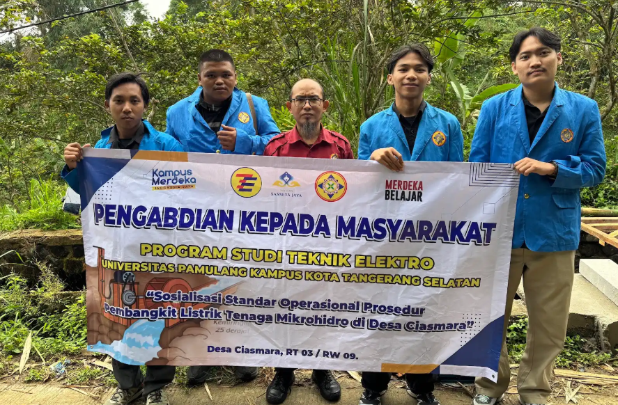 BOGOR, 22 JUNI 2025 – Tim Pengabdian kepada Masyarakat (PkM) dari Program Studi Teknik Elektro, Fakultas Teknik, Universitas Pamulang (UNPAM) sukses melaksanakan program sosialisasi Standar Operasional Prosedur (SOP) Pembangkit Listrik Tenaga Mikrohidro (PLTMH) di Desa Ciasmara, Kecamatan Pamijahan, Kabupaten Bogor. Kegiatan ini bertujuan untuk meningkatkan kapasitas masyarakat dalam mengelola potensi energi terbarukan secara aman dan berkelanjutan.